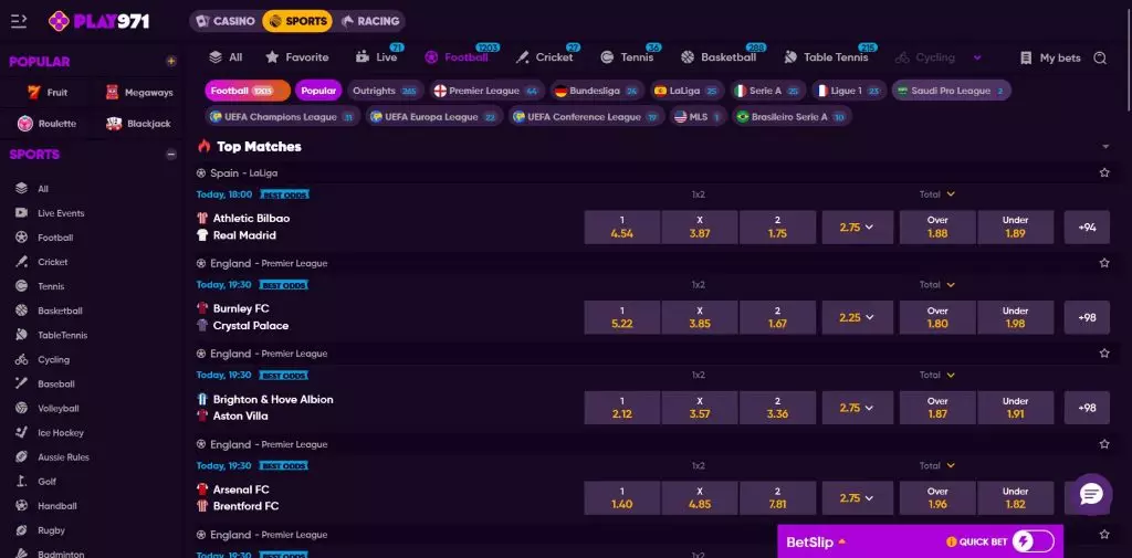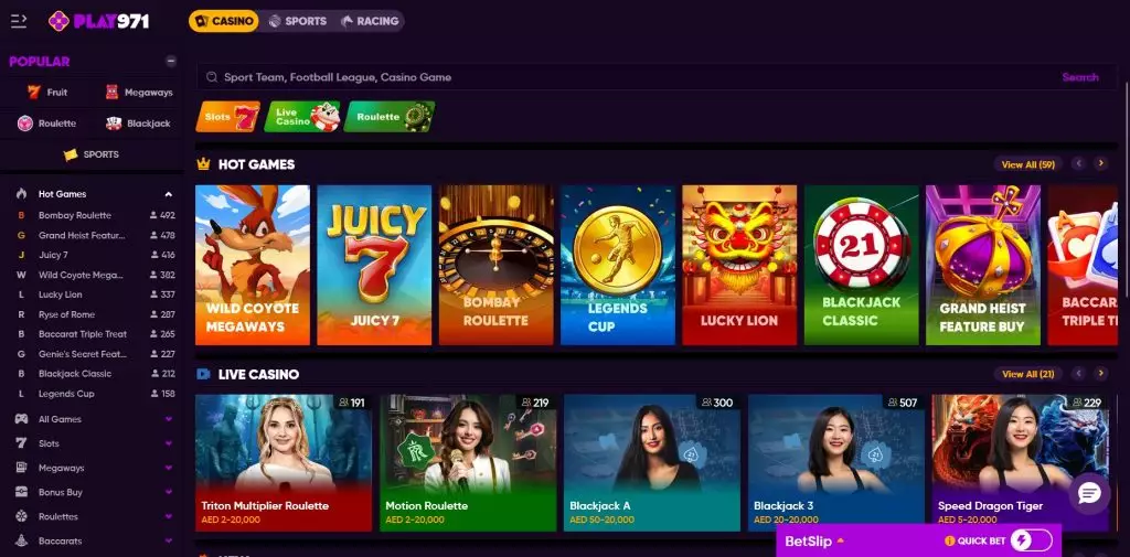The Racing vertical appears to serve a very specific purpose: it shows that Play971 is not only positioning itself as a general gambling site but as a full-spectrum operator capable of handling data-heavy, high-integrity content from day one.